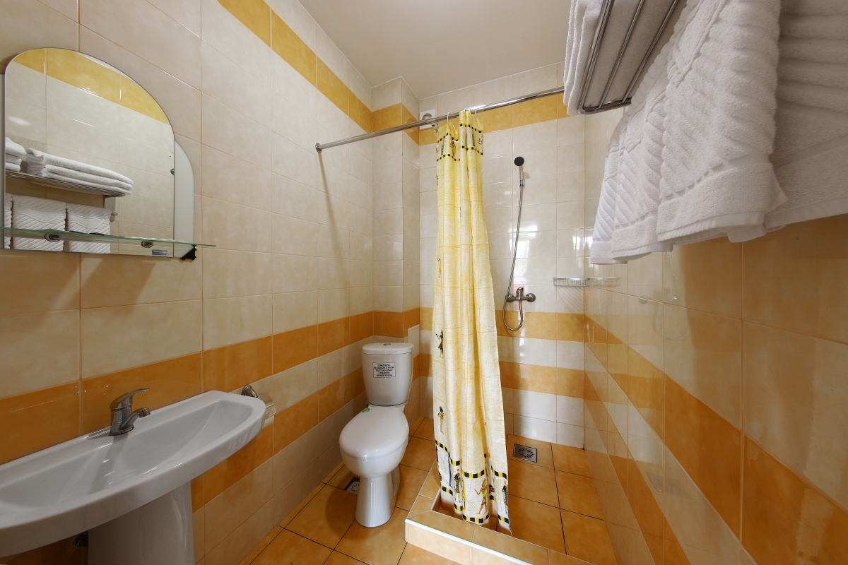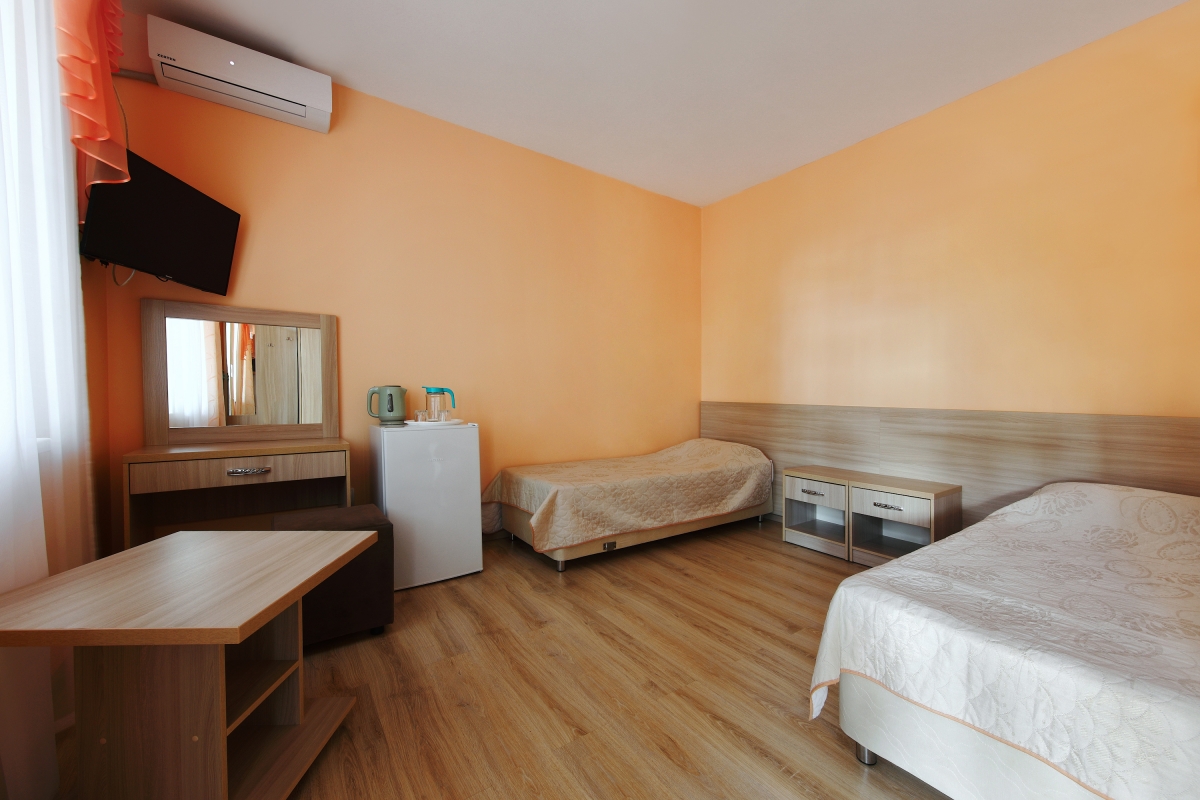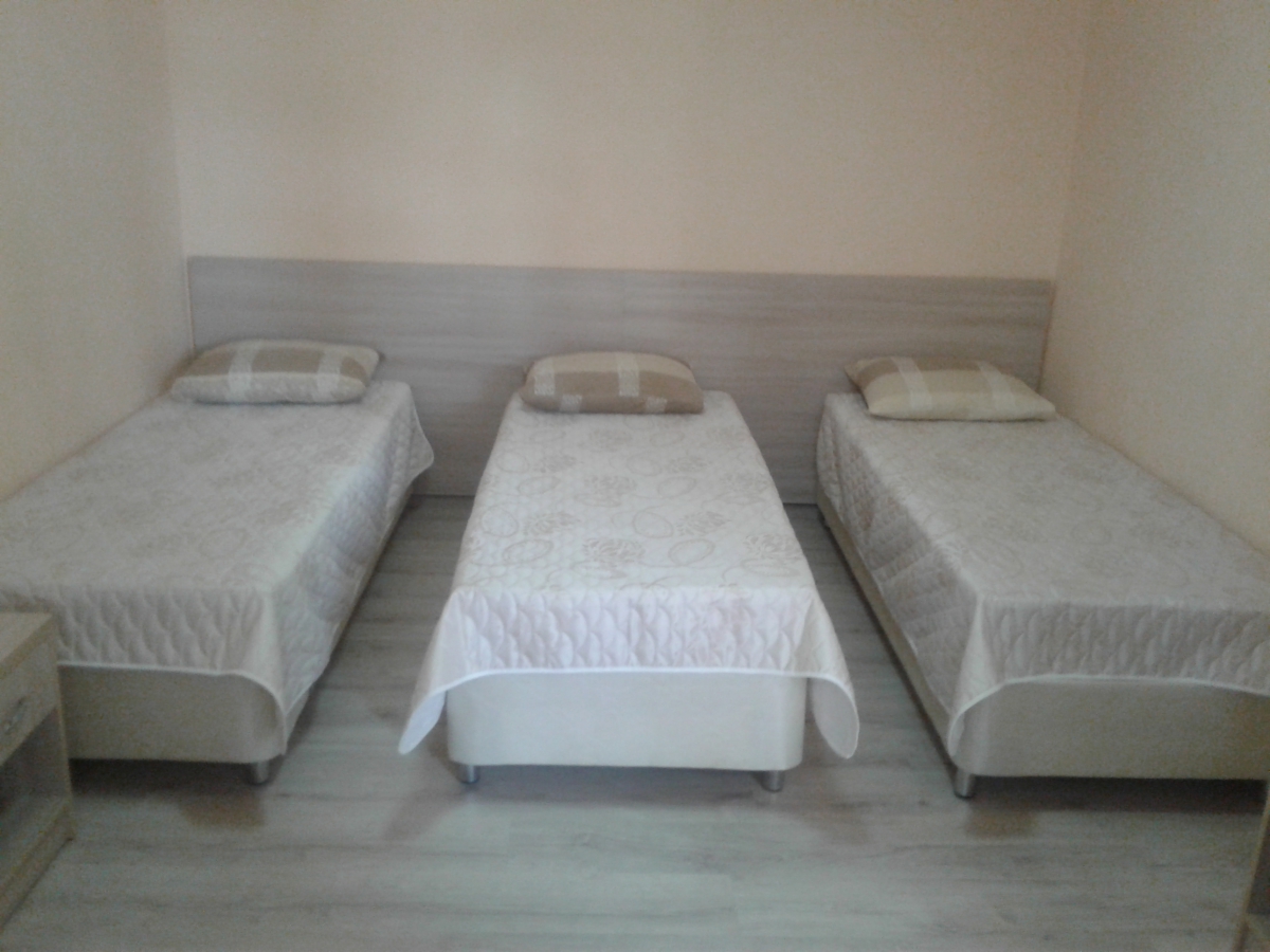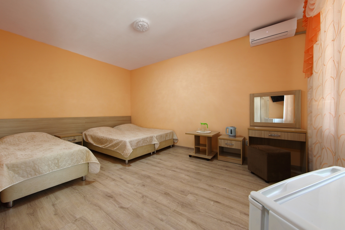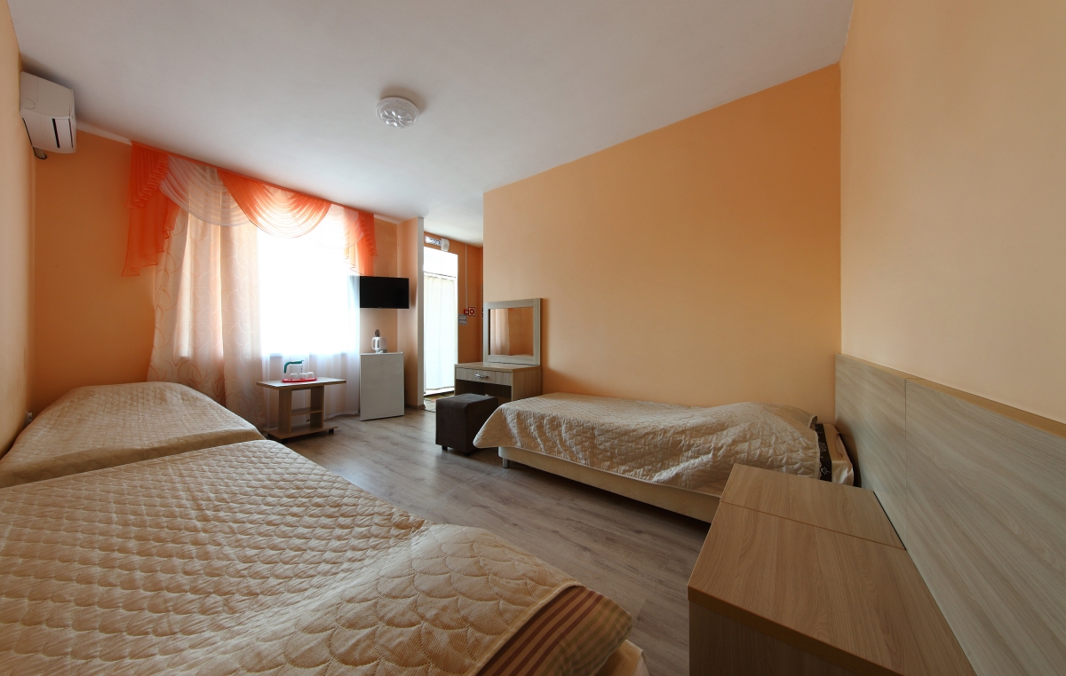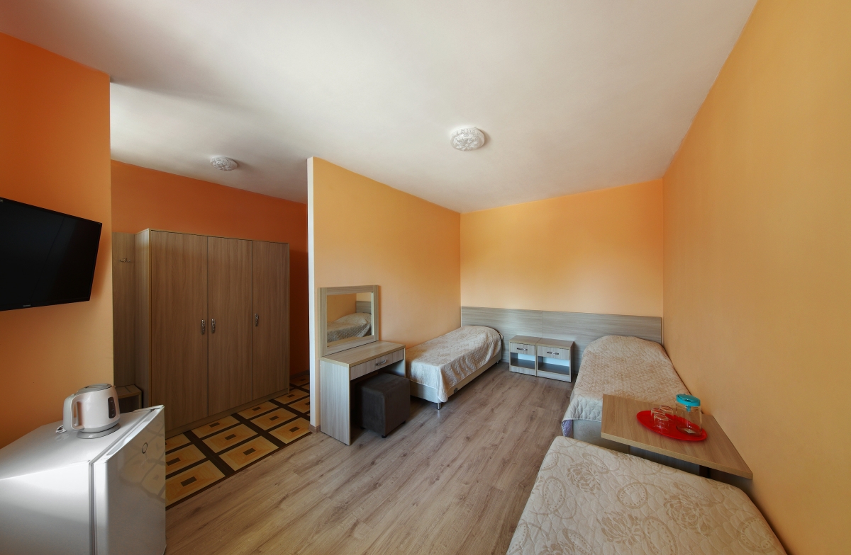 | Трехместный стандартный номер с видом на двор – три односпальные кровати, выход на террасу (108,109,110) | 3800 | 4500 |